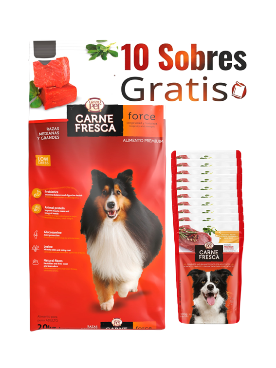 GrandPet® Carne Fresca Force 20 Kg + 10 Sobres GRATIS