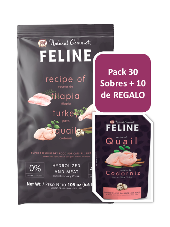 Natural Gourmet Feline® con 30 Sobres Codorniz + 10 de Regalo